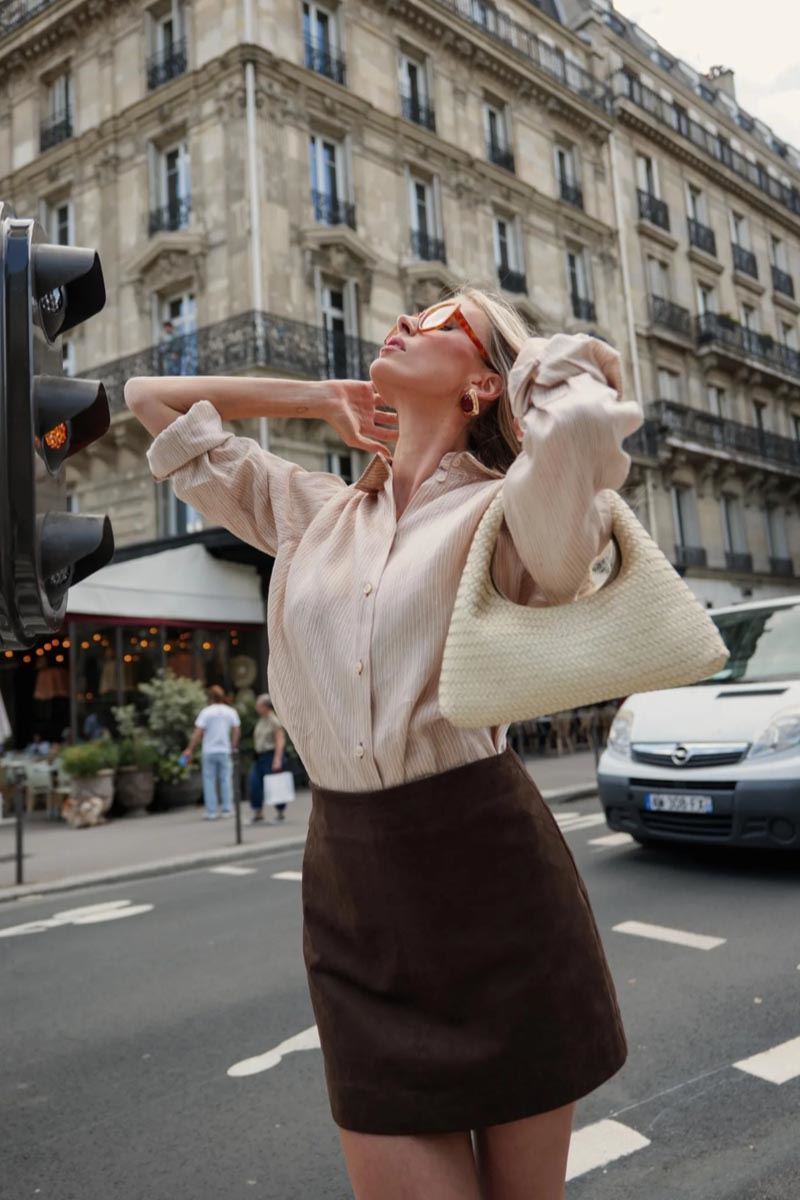 Chocolade bruine mini rok in een daimlook .