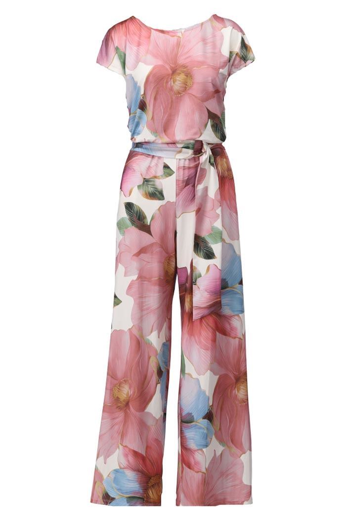 Deze jumpsuit van k-design heeft een prachtige bloemenprint in roze en blauw. Hij heeft een losse pasvorm met korte mouwen en een elegante tailleceintuur. PRE-ORDER!