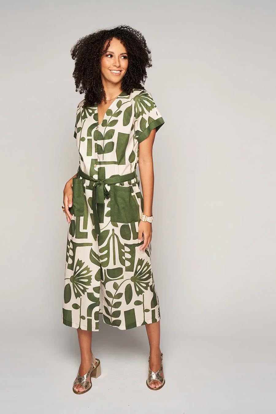 Deze jurk is bezaaid met een groen botanisch patroon, afgewerkt met een stijlvolle ceintuur. Ideaal voor een frisse, zomerse uitstraling!
