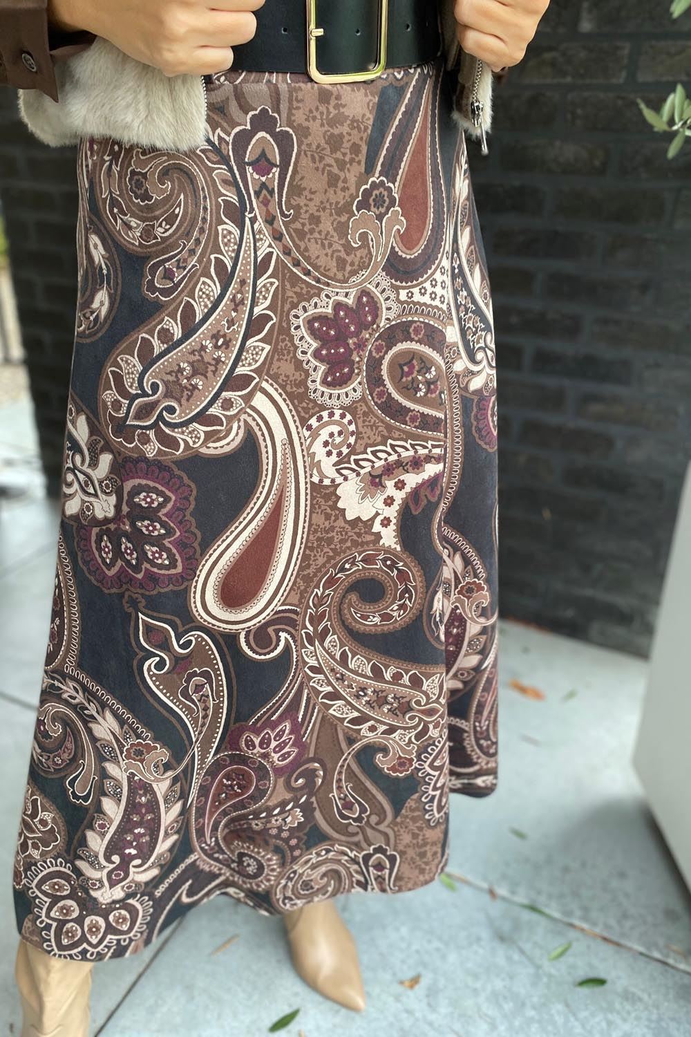 De rok heeft een prachtige paisley-print in bruine en beige tinten. Perfect voor een boho-chique look!
