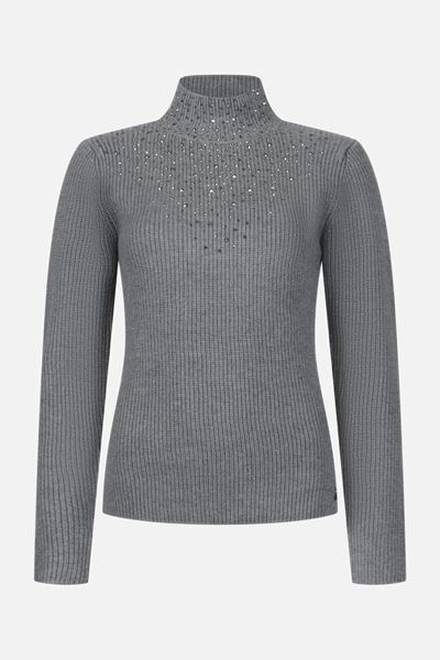 Deze grijze trui met hoge kraag is lekker cosy. De sprankelende details geven 'm een verfijnde touch. Perfect voor een chique, comfy look!