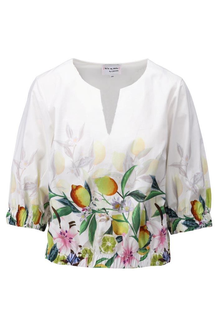 Deze blouse in stretch katoen is vrolijk en fris met een prachtige citroen- en bloemenprint. Perfect voor een zomerse dag met een casual uitstraling!
