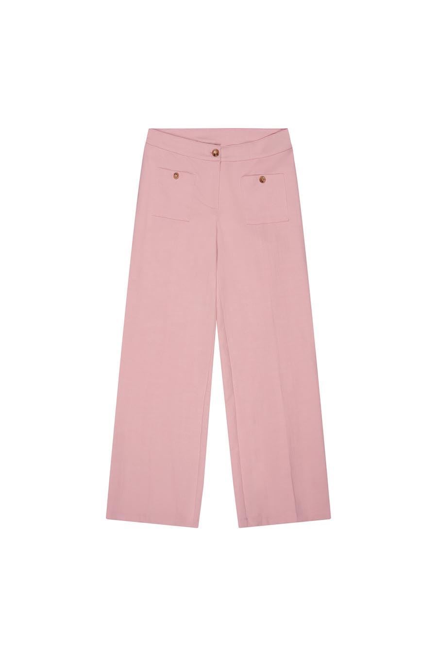 Broek met rechte pijpen en 2 opgestikte zakken vooraan. Mooi in combinatie met korte vest Izaura.