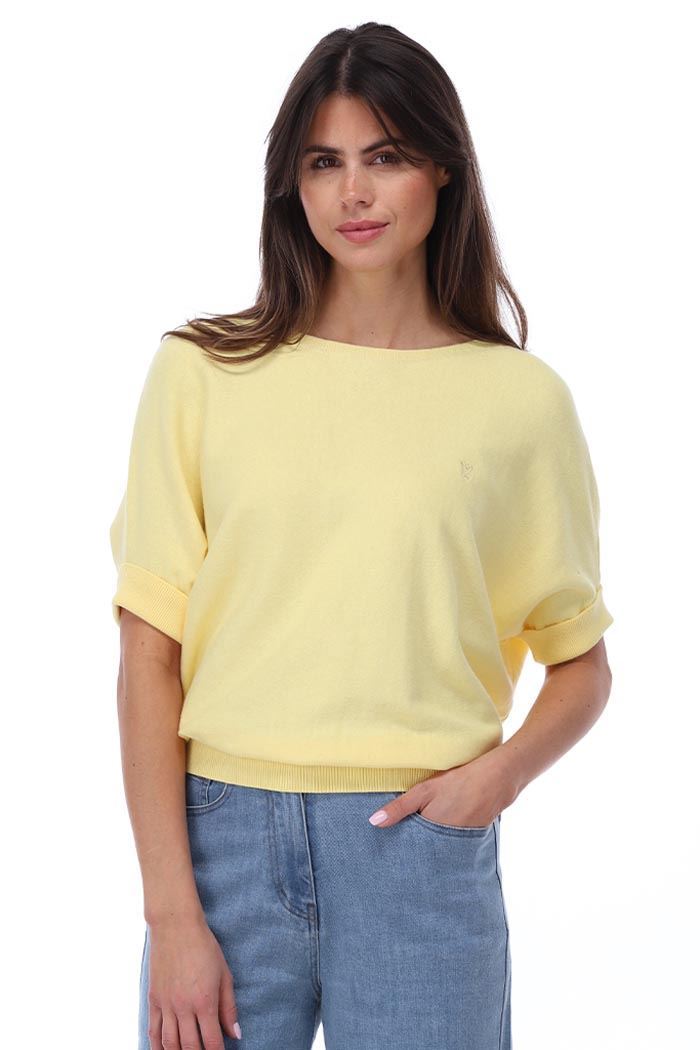 lichtgele truite met vleermuismouw zorgt voor een ontspannen pasvorm. Perfect voor een frisse, casual look!